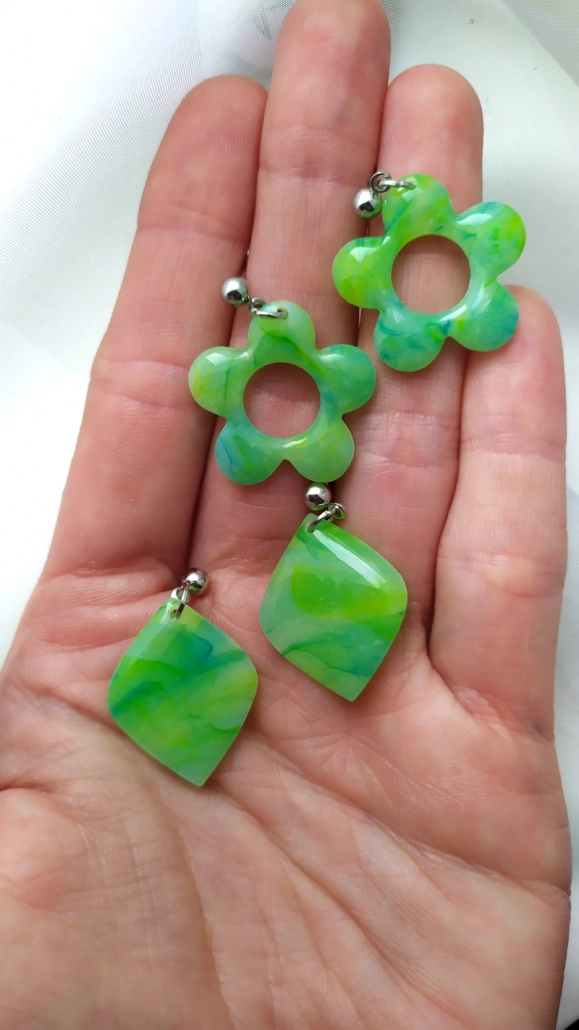 Ohrstecker Blumen „Caipi“Blumen Ohrstecker in gelb und türkisHundemarke mit Armband in grün weiß goldHundemarke mit Armband “Gary”