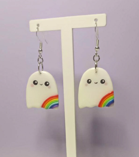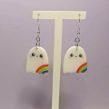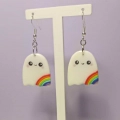 Süße handgefertigte Geister-Ohrringe mit Regenbogen.