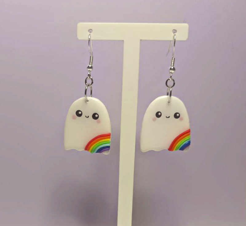 Süße handgefertigte Geister-Ohrringe mit Regenbogen.
